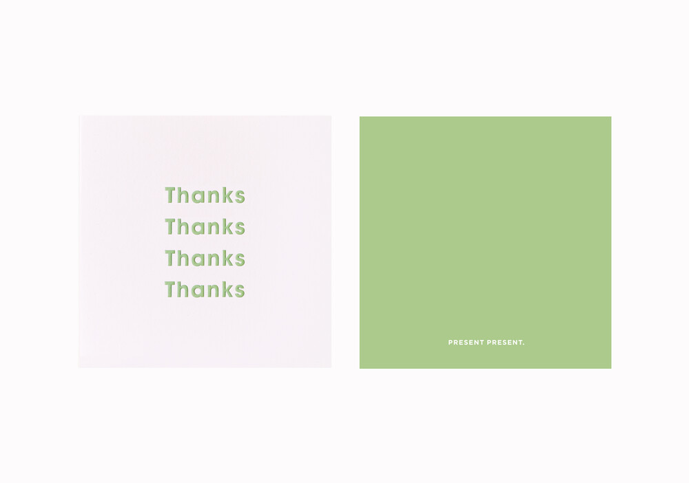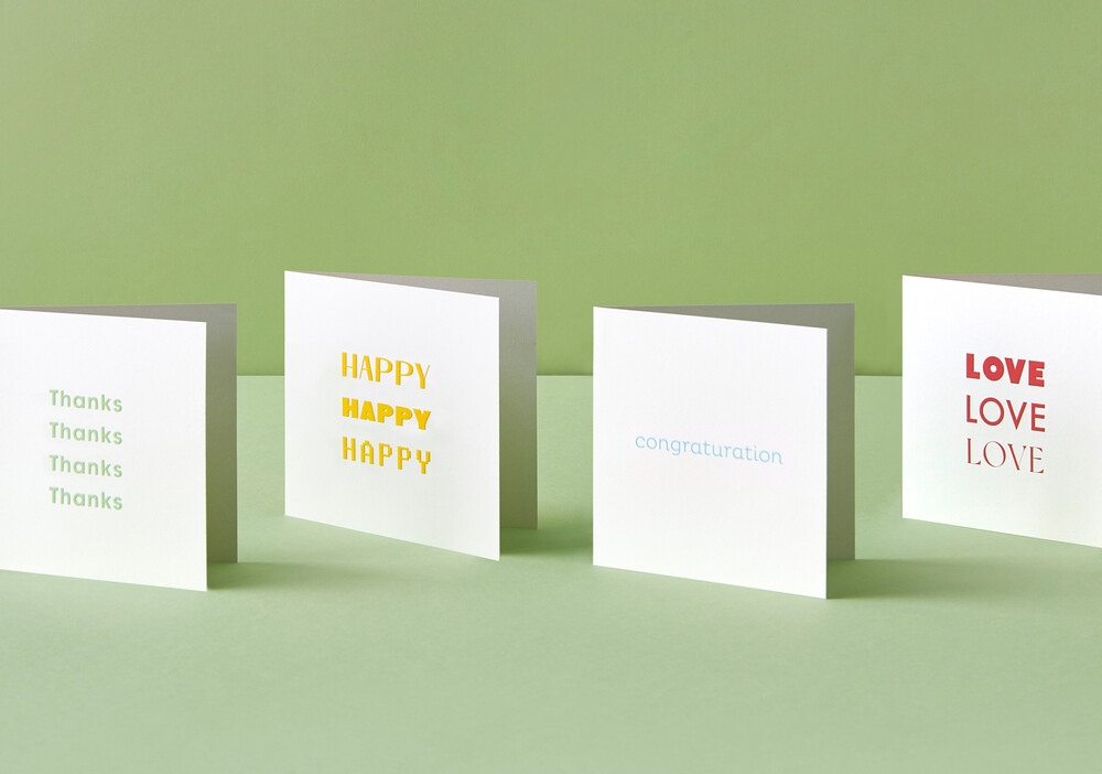 심플한 단어로 만들어진 정사각형 폴딩 카드입니다.