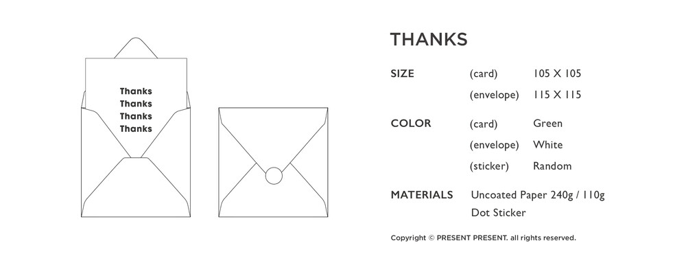 메세지 카드는 카드와 봉투, 원형 스티커가 한 세트입니다.
