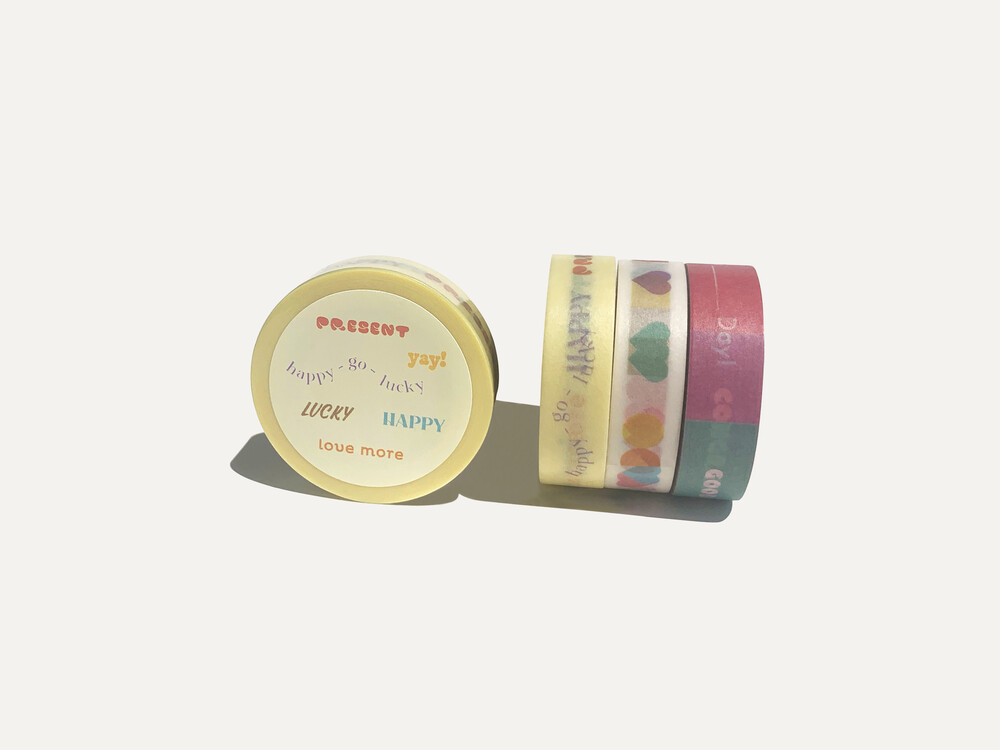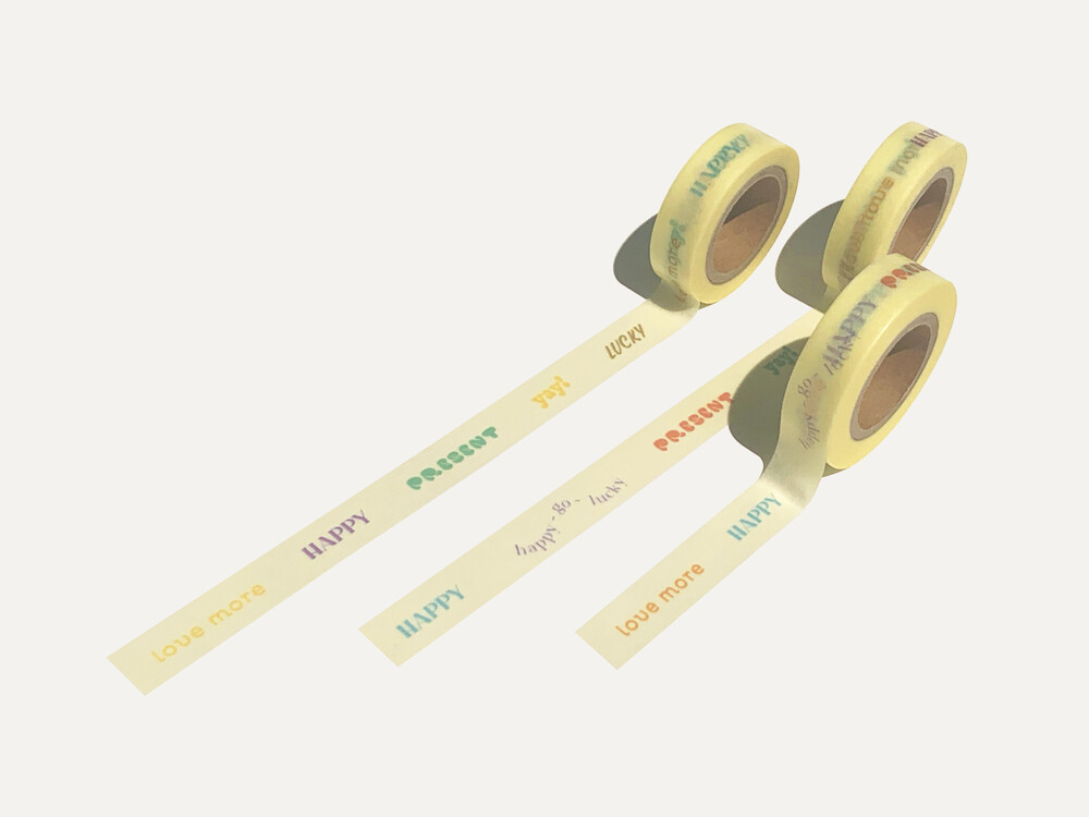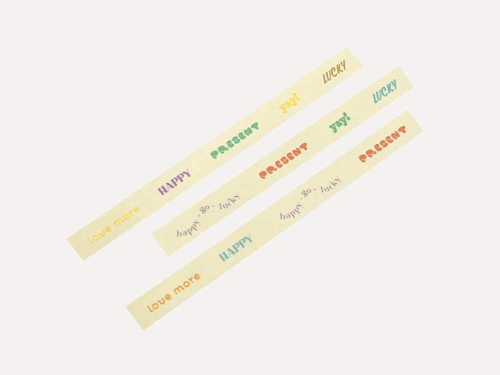 PRESENT · HAPPY · LOVE MORE · YAY! · LUCKY · HAPPY - GO - LUCKY