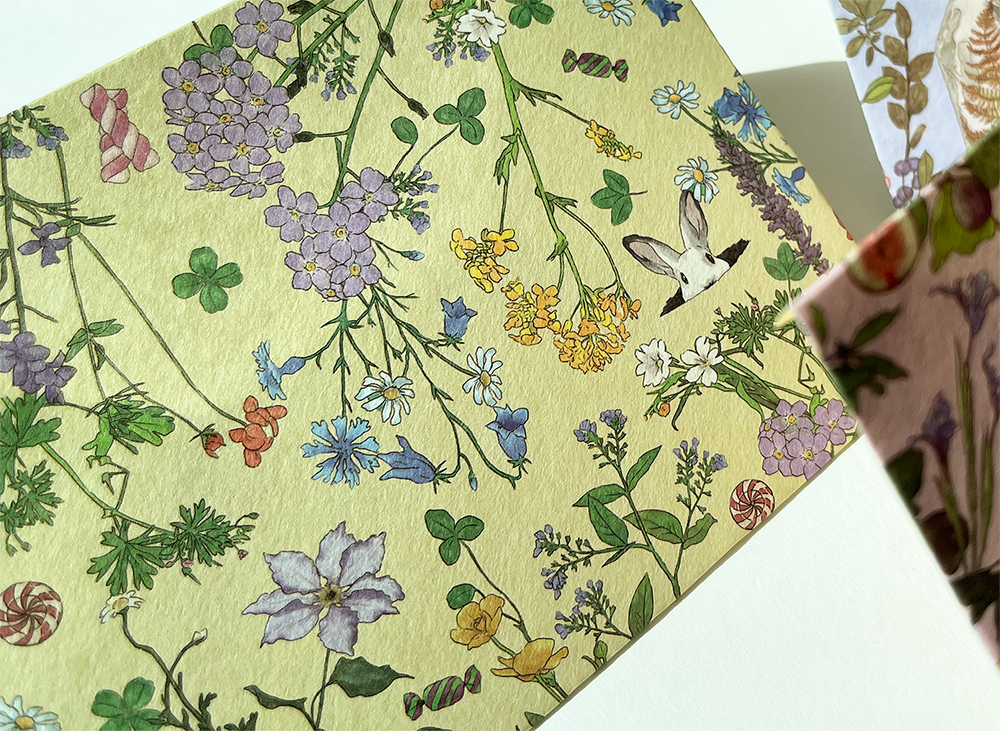 그림에 메세지를 담아 선물하는 것 같이 봉투 겉면에 꽃과 풀을 가득 담았습니다.