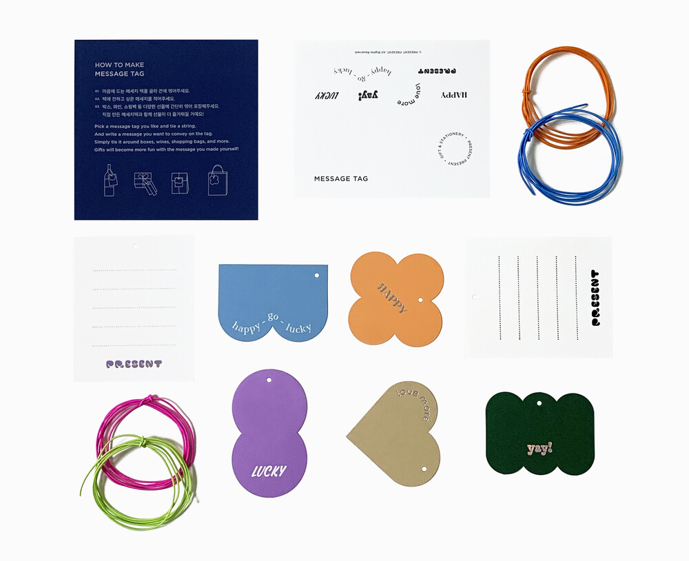 테그를 하나씩 또는 여러 개를 레이어드해서, 준비한 선물에 엮어 정성스럽게 선물할 수 있어요.