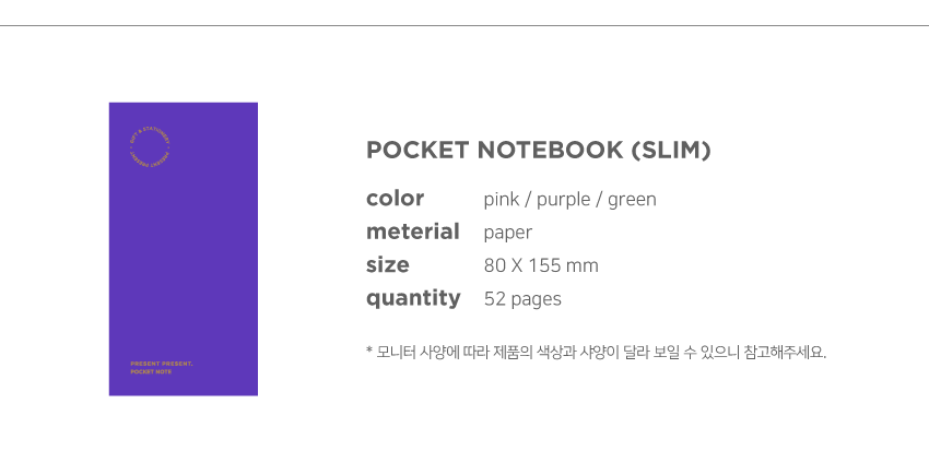 여러 컬러가 함께 있을 때 더욱 빛을 발하는 포켓 노트로 일상의 생각들을 틈틈이 기록해보세요.